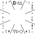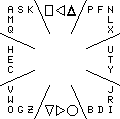 There are four character sets: LOWERCASE, CAPITALS, PUNCTUATION, and NUMERIC. The default is LOWERCASE. The others are reached via ``shifting'' keys. The shifting keys for CAPITALS, PUNCTUATION, and NUMERIC, are, respectively, up-arrow, rectangle, and circle. Every shifting key is present in every character set. The keys for space, backspace, and newline are, respectively, right-arrow, left-arrow, and down-arrow.