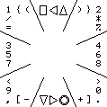 The position of each printed character in the small square corresponds to how that character is drawn. Each printed character is positioned in one of the eight outer zones (its major zone), and also at some relative position within this zone (indicating its minor zone). To draw a stroke, you move the stylus from resting zone 5 to the character's major zone, then to the character's minor zone,and finally back to resting zone 5. If the major and minor zones of a character are the same, then to draw the character you need only to move the stylus from resting zone 5 out to the character's major zone and then back again.